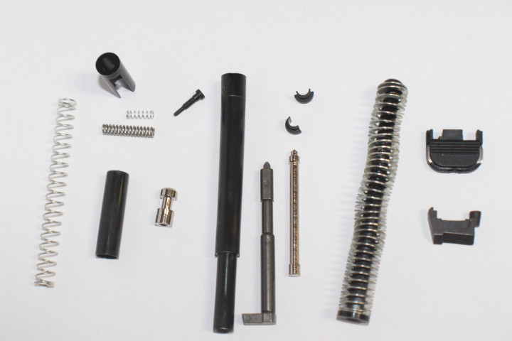This kit includes: Recoil Spring Assembly, Firing Pin & Spring, Firing Pin Spacer Sleeve, Firing Pin Spring Cups, Firing Pin Channel Liner, Extractor Depressor Plunger & Spring, Spring Loaded Bearing w/ Load Chamber Indicator (LCI), Firing Pin Safety & Spring, Extractor w/ LCI, Slide Cover Plate and Channel Liner Installation Tool. Complete your build today with the Strike Industries Completion Kit For GLOCK™ GEN3 G17 or G19.