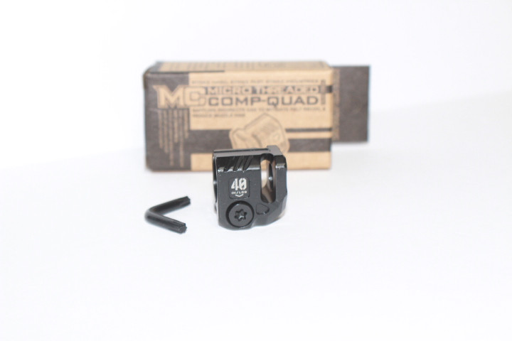 The QUAD is a pistol compensator from the Strike Micro Threaded Comp (SMTC) line that can work with just about any size slide using a threaded barrel with 1/2"x28 Threads Per Inch (TPI). The wide front wall baffling redirects gas to mitigate felt recoil and reduce muzzle rise. SI internal testing has typically seen a reduction average range (dependent on application) of 15-30% in felt recoil. This QUAD version in the SMTC line has a built-in anti-rotation system using the front tip of the pistol guide rod for most applications other than pistols with a flush guide/recoil rod system. With the clamp style design on the SMTC QUAD, timing the comp is simple including a secure and tight fitment. Originally designed for smaller compact, sub-compact and micro sized pistols, the SI styling of this QUAD pairs aesthetically well with most OEM and aftermarket slides on the market including full size pistols. Made from S45C steel with HRC40-45 heat treatment and a black oxide finish, the Strike Micro Threaded Comp – QUAD offers a smaller threaded barrel compensator option for your pistol with SI style.